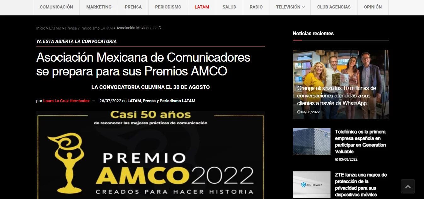 Abierto el plazo de inscripción para los Premios AMCO 2022 de la Asociación Mexicana de Comunicadores