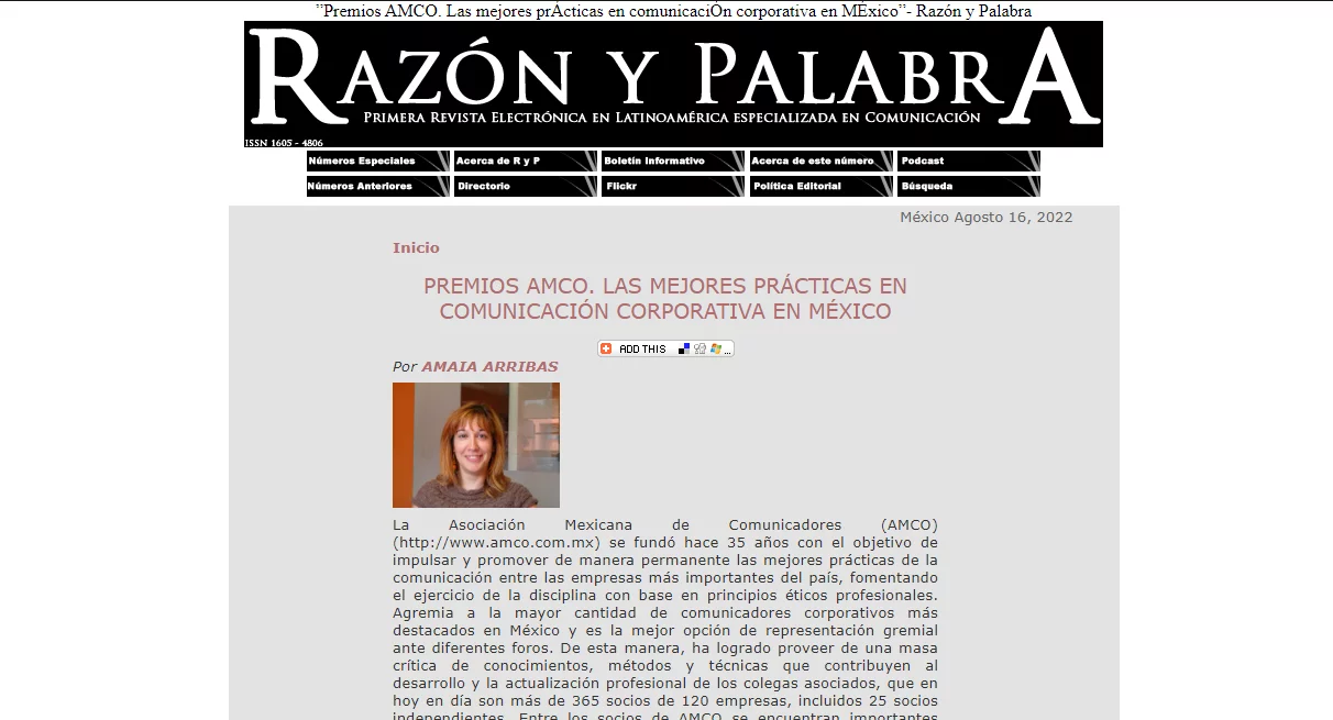 Premios AMCO. Las mejores prácticas en comunicación corporativa en México