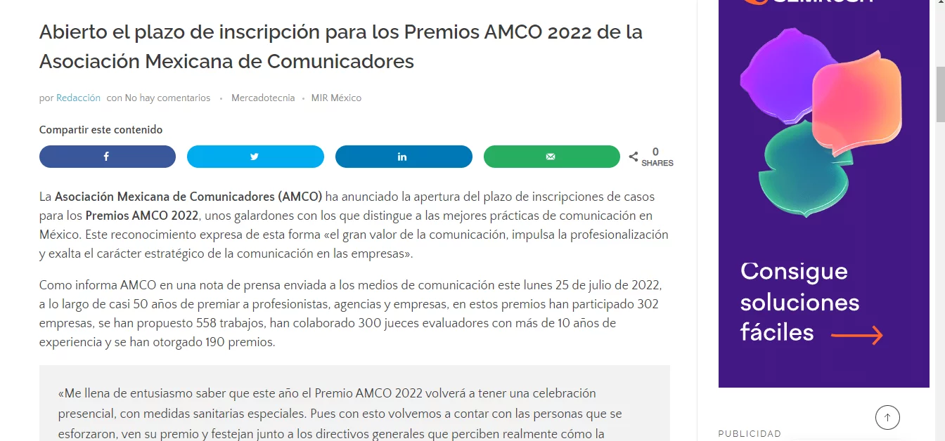 Convocatoria al Premio AMCO 2024: una oportunidad para destacar en comunicación. - El Publicista