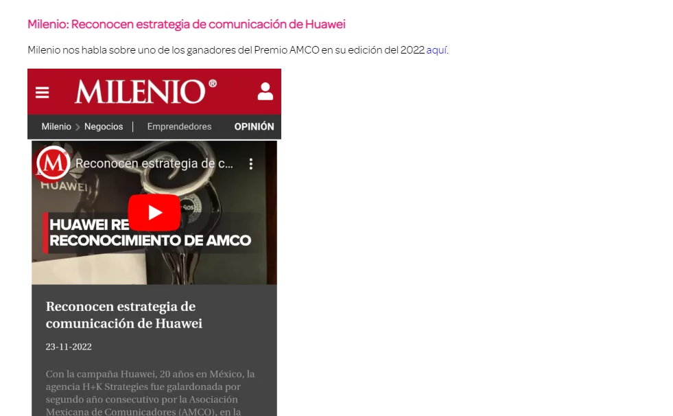 Milenio: Reconocen estrategia de comunicación de Huawei