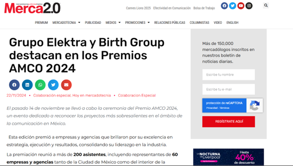 Grupo Elektra y Birth Group destacan en los Premios AMCO 2024